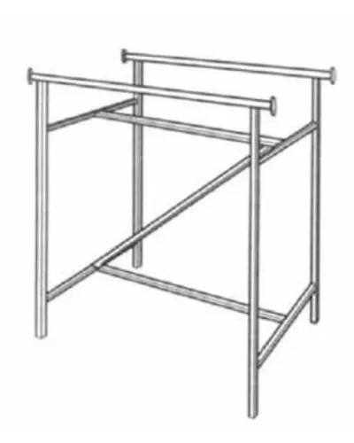 Dimensions: 60″L and 22″W Reinforced “Z” brace in center. Hang rail height is adjustable every 3″ from 48″ to 66″. Adjustable levelers included. Hang rails have holes drilled for use with signs Made of 1-1/4″ round tubing.